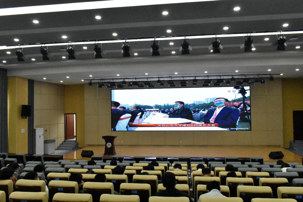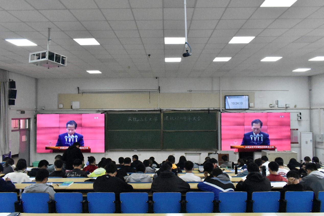 10月15日上午,电气工程学院组织全院学生于讲学堂101、109及各班教室共同观看“庆祝山东大学建校一百二十周年大会”线上直播。大会由山东大学党委书记郭新立主持,在上午9时整准时于中心校区体育场召开。