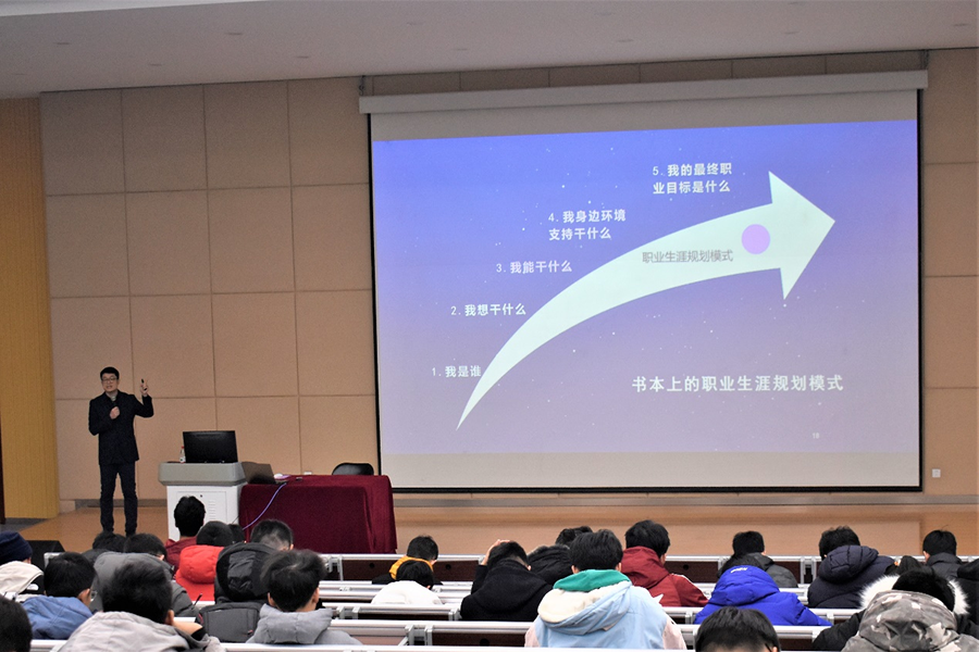 讲座上,董廷杰介绍了山东省2021届毕业生就业情况以及职业路径与方向。他表示,2021届毕业生就业率同比增长,但毕业人数较往年有所增多,并且这一增长趋势会不断延续,这无形之中为就业增加了压力。对于数据显示的毕业学生去向呈现多元化趋势、考研率不断攀升、灵活就业较为普遍等现象,董廷杰认为这属于当代大学生喜欢的一种自由,追求的一种平等,向往的一种包容。在接收山东生源的省内单位中,山东大学排名第一,他由此指出,学生毕业之后没有找到合适的岗位,而学校鼓励学生从事科研助理是一个非常好的就业渠道,既解决了毕业去向问题,也为学生下一步继续考研提供了便利的条件。在就业城市方面,董廷杰向同学们推荐了山东省省会经济圈、胶东经济圈、鲁南经济圈以及省外的深圳等国家核心城市。讲座最后,他介绍了“国聘行动”等职业资源与“就选山东”校园招聘会等职业平台,引用《论语》中“取乎其上,得乎其中;取乎其中,得乎其下;取乎其下,则无所得矣”来激励同学们进行职业规划时要如同爬山一样,先确定一个大目标,随后不断为其攀登。