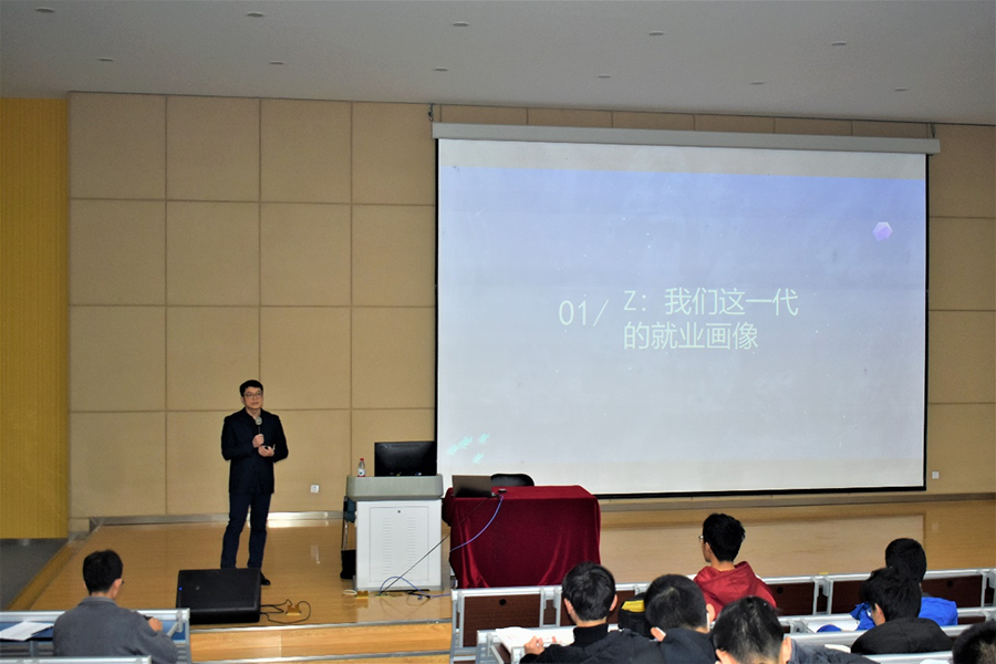 董廷杰首先利用丰富的统计数据阐明了当代大学生的六个特点:自我意识较强、现实主义、注重关怀感、包容度提升、具有平等意识、社会适应能力强。就数据中大学生对薪资水平关注度较高的问题,董廷杰劝诫同学们毕业后找工作不要过于专注薪资,应从工作环境、生活压力和企业价值观等多方面考虑。同时,他对大学生认为自身努力对事业成功影响最大的看法表示赞同,提出同学们应该及时根据社会发展形势作出调整,以适应不断变化的就业形势。